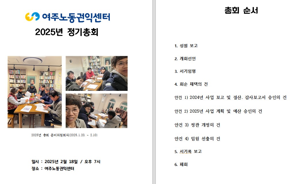 2025년 2월 18일 여주노동권익센터의 총회가 열렸습니다.